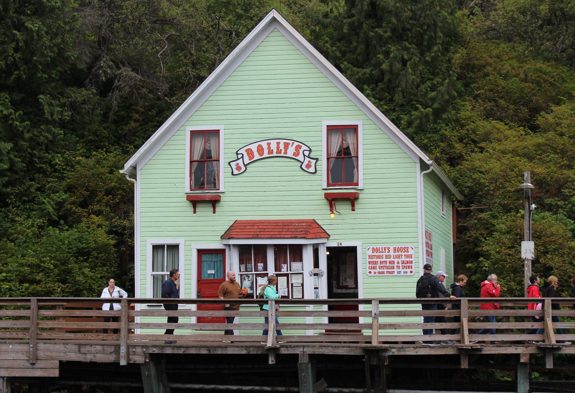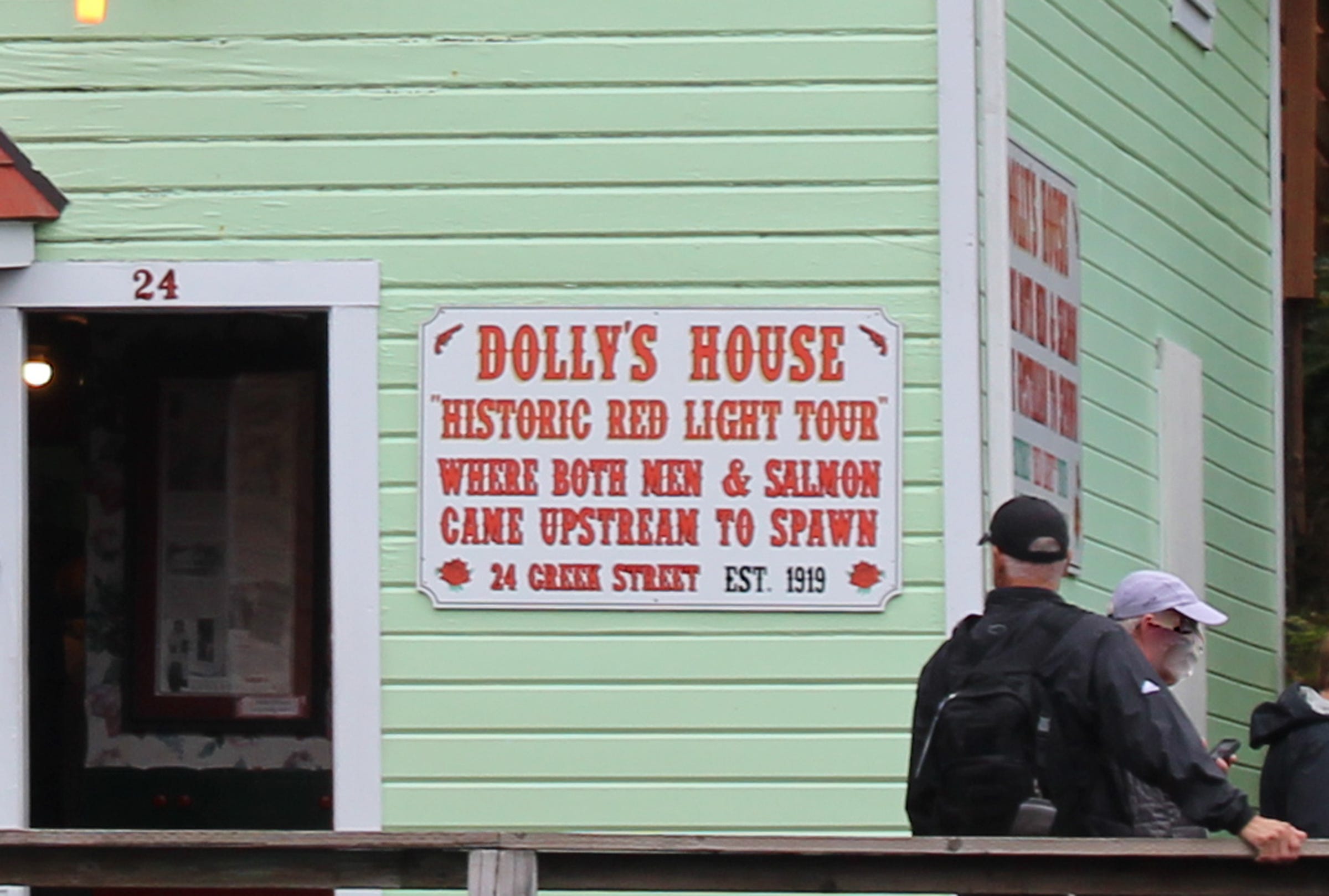 The house in the center of the photo above is Dolly’s House. Built around 1905, the house was bought by Thelma Copeland who went by the name of Dolly Arthur, one of “Ketchikan’s most famous ‘sporting women'” as the information sign euphemistically puts it. She ran her business from 1919 through the 1940s and stayed there until 1973 when she moved to a nursing home.