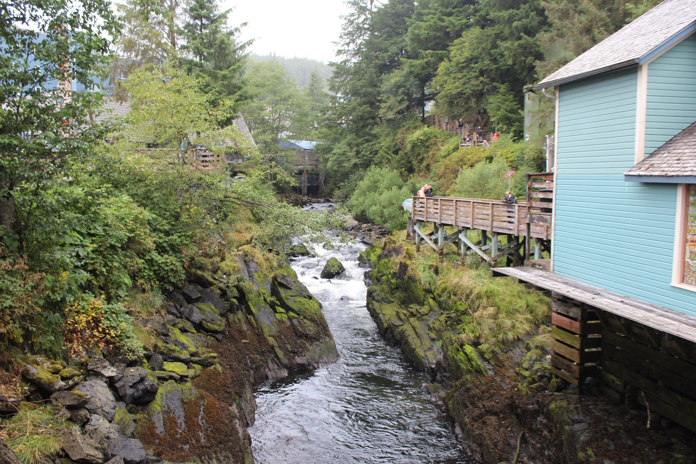 Cruises offer a variety of excursions you can take at each port of call but we opted to explore on our own and we’re glad we did. My sister-in-law was keen to see the salmon run and it was a short walk from the cruise ship to Ketchikan Creek. Soon we were at a bridge crossing the creek to a boardwalk on the other side, the prime viewing area for spawning salmon.